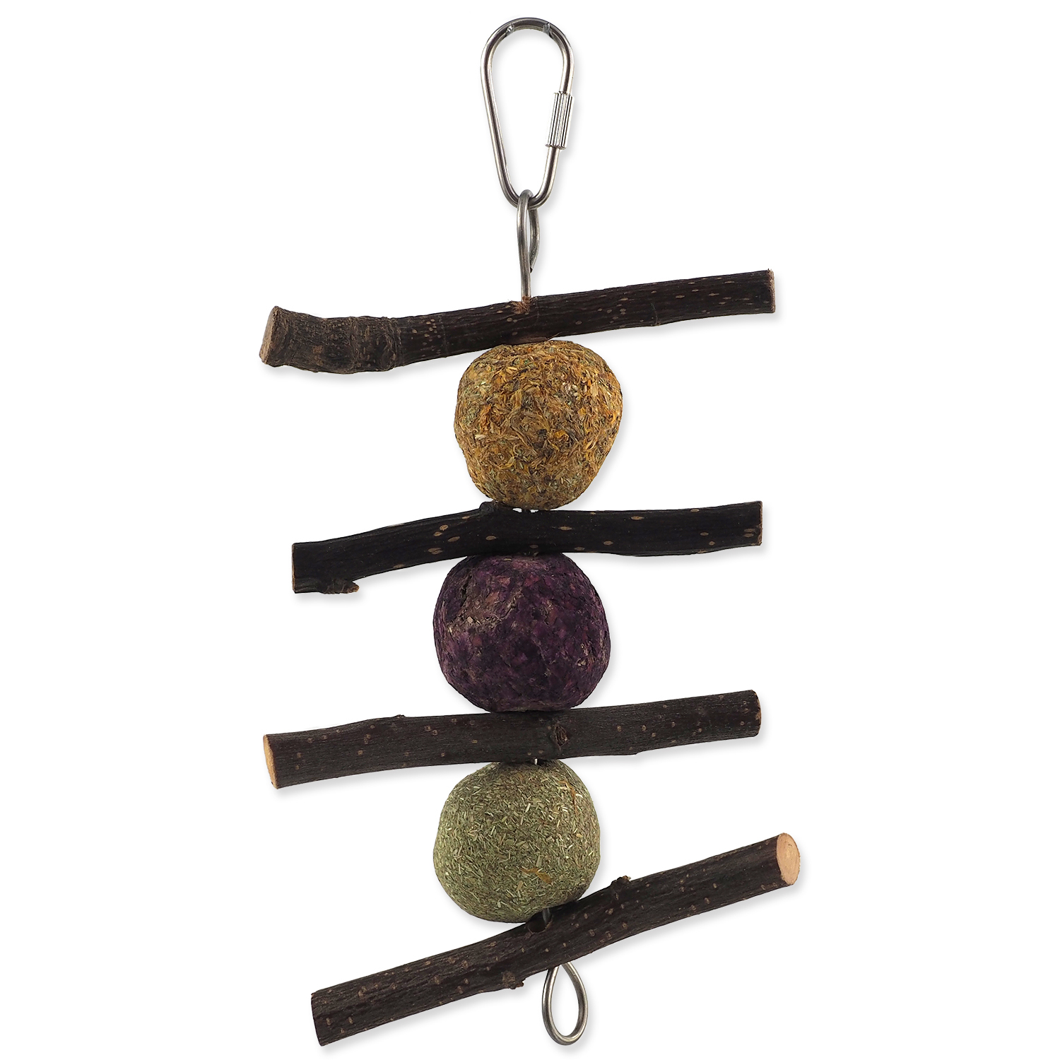 Hračka je určena speciálně pro domácí zvířata a skvěle poslouží jako interaktivní prvek do klece či prostoru, kde váš mazlíček tráví čas. Díky závěsnému provedení podporuje přirozený pohyb a hravost, což přispívá k lepší kondici a duševní pohodě zvířete. Bezpečnost je u hračky prioritou - nezapomeňte ji pravidelně kontrolovat a včas odstranit při jakémkoli poškození, aby se předešlo nechtěnému spolknutí drobných částí.
