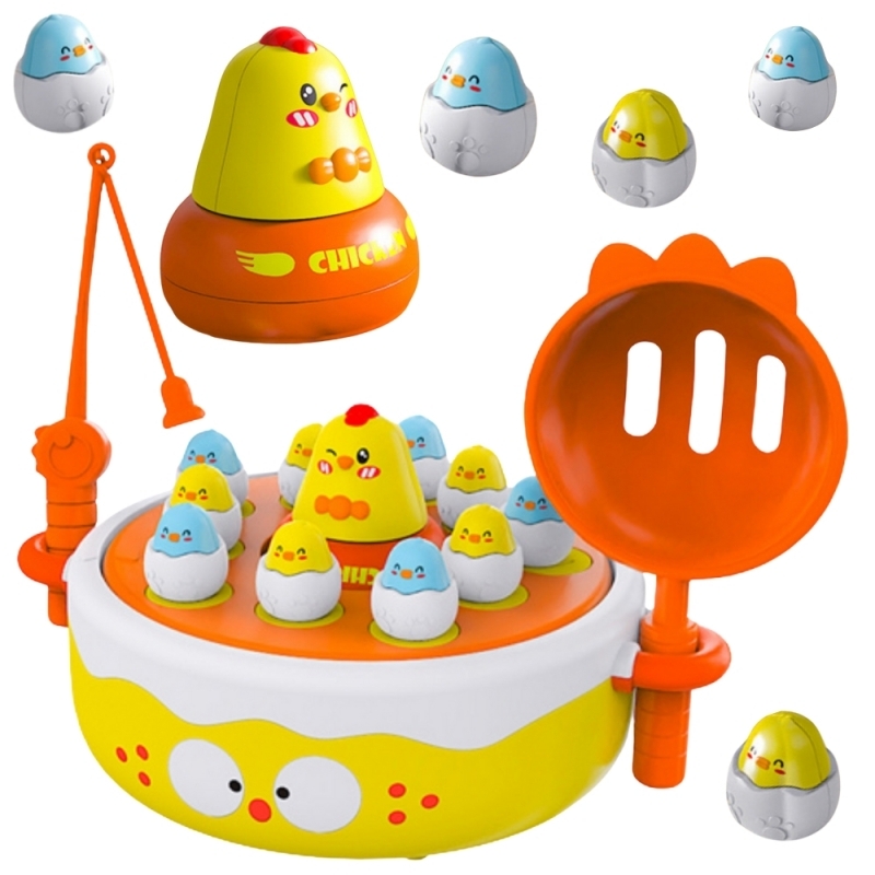Przygotuj się na świat pełen radości i nauki z grą "Wesołe Kurczaczki" od Woopie! Ta wciągająca zabawka 4w1 pozwala dzieciom łowić pisklęta wędką, łapać je łopatką po wystrzeleniu z katapulty, obserwować wirujące kurczaczki na muzycznym dysku, a nawet używać większego kurczaka jako samochodziku....