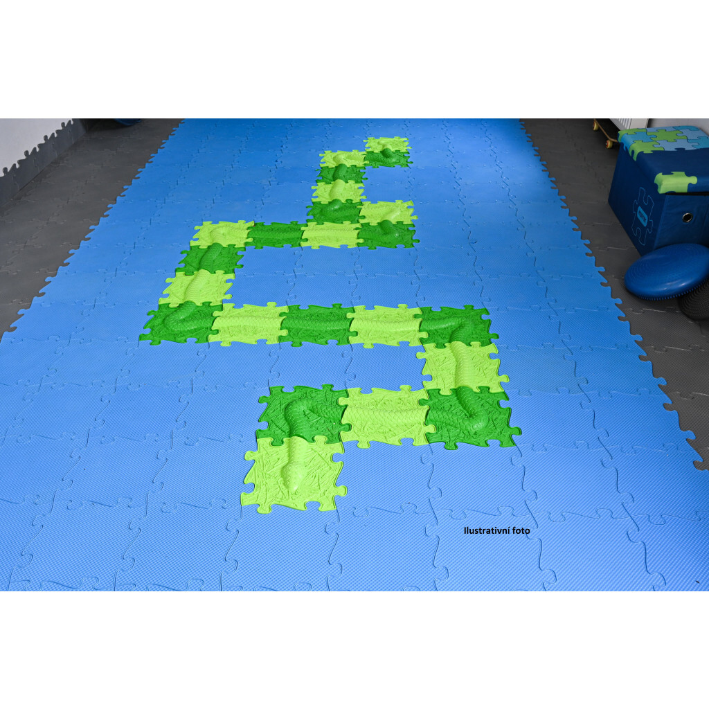 Set 12 dílů pro sestavení ortopedického koberce s motivem hada. Jednotlivé díly se do sebe skládají jako puzzle. Členitý povrch koberce je ideální ke stimulaci chodidel, rozvoji chůze, k procvičení rovnováhy, jako prevence plochých nohou, vede ke správnému držení těla a posílení jeho středu,...