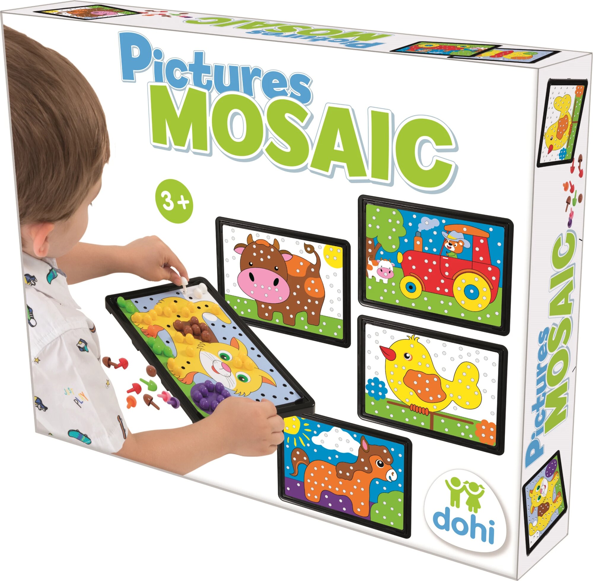 DOHÁNY Mozaikové obrázky jsou perfektní vzdělávací hračka, která nejen zabaví vaše děti, ale také podporuje jejich důležité dovednosti. Proč si tuto sadu nevybrat? Pomůže rozvíjet koordinaci oko-ruka, představivost a trpělivost - to vše při zábavné činnosti, která dětem přináší radost a uspokojení z tvorby.
