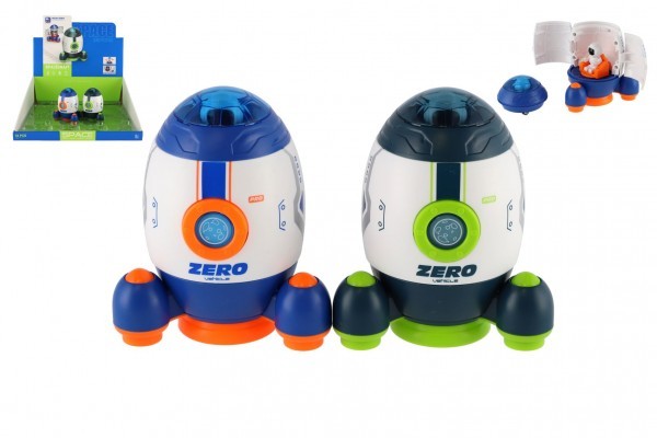 Raketoplán/raketa plast 9x11cm s kosmonautem s vozítkem na setrvačník 2 barvy 12ks v boxu