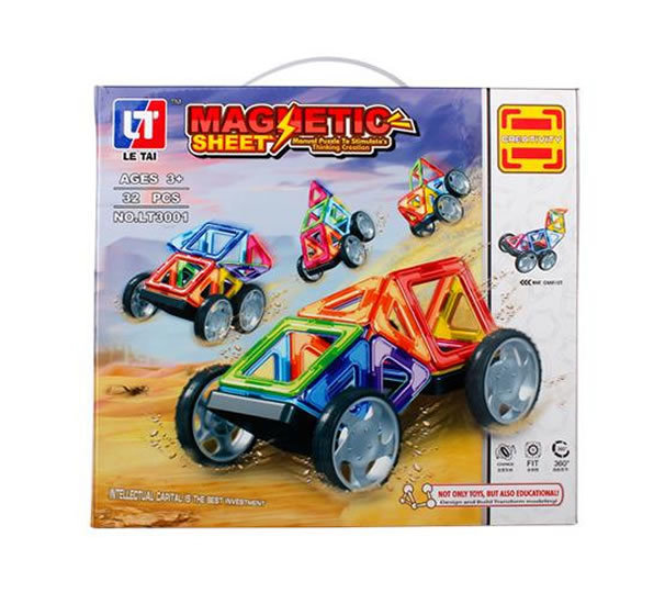 - Obsahuje 32 magnetických dílků různých tvarů a barev.