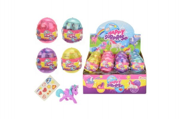 Vejce jednorožec kůň s nálepkami plast 4 barvy 24ks v boxu