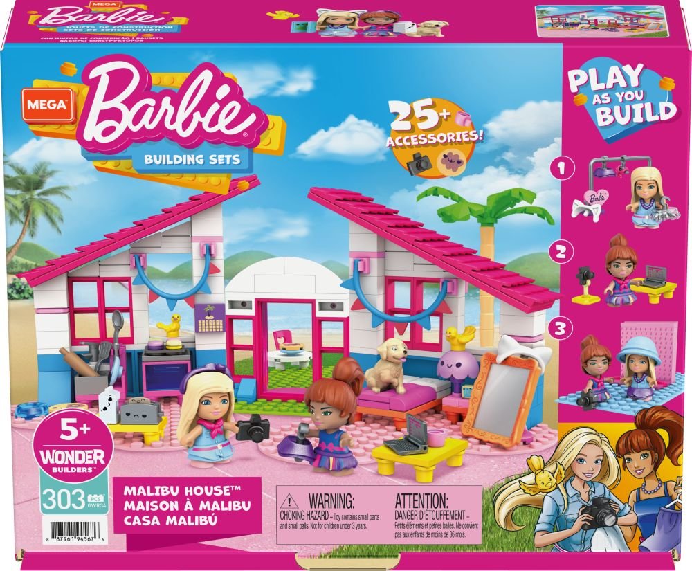 Vstupte do světa stavění se sadou Barbie Dům snů v Malibu. Sestavte si svůj vysněný dům krok za krokem, vybavte ho nábytkem a krásnými doplňky, které oživí každý prostor. V domečku najdete vše potřebné pro radostné chvíle - od pohodlných pokojů až po vlogovací studio, kde můžete tvořit vlastní zábavná videa s postavičkami Barbie. Součástí balení jsou dvě mikropanenky Barbie a roztomilé štěňátko, což rozšíří možnosti hry a pomůže oživit váš příběh.
