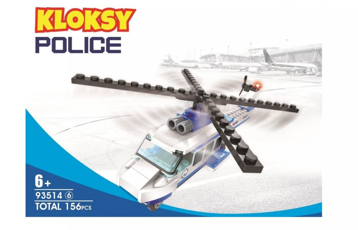 Klocki KLOKSY - seria policja - helikopter, 156 elementów. . číst celé