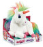 - Plyšová hračka ve tvaru jednorožce s duhovou hřívou a ocasem.