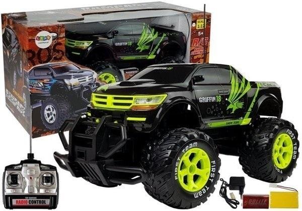Ogromny Jeep Rampage R/C Czarny MONSTER TRUCK Fabrycznie nowy, markowy samochód zdalnie sterowany Rampage Cross-country wykonany skali 1:12. Podczas jazdy świecą światła z przodu i z tyłu !!! Prawdziwy bajer !!! To doskonała zabawa dla każdego!Samochód szybko i sprawnie porusza się w 4...