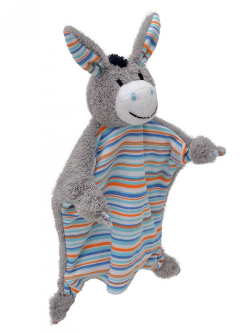 Tento maňásek je vyroben z příjemného materiálu, který je vhodný i pro ty nejmenší děti. Díky své měkkosti a tvaru snadno padne na ruku, takže děti si mohou hrát i mazlit se s tímto roztomilým oslíkem. Navíc je praktický v každodenním použití - když je potřeba, můžete s ním dětem i utřít pusinku.