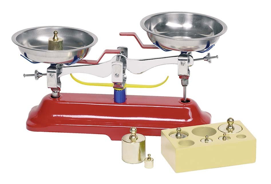 - Dvě kovové misky, z nichž jedna slouží pro položená těžítka