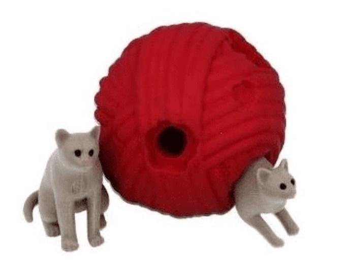 Kłębuszek posiada otworki do których wkładać można 2 szare kotki dołączone do zestawu. Wszystkie elementy wchodzące w skład zabawki są bardzo elastyczne i wytrzymałe. Kotek kłębek wełniany można rozciągać. číst celé