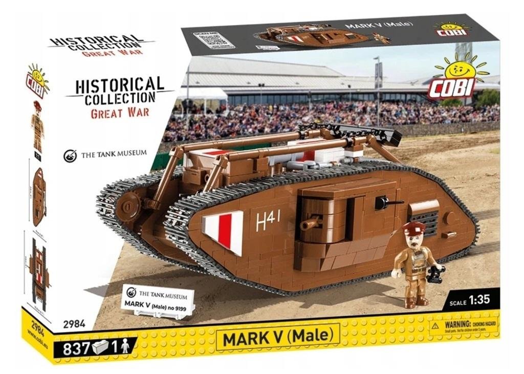 Odwzorowany ze starannością model czołgu MARK V (Male) numer 9199 składa się 837 klocków konstrukcyjnych COBI i mierzy 29 cm długości. Dzięki zastosowaniu modelarskiej skali 1:35 model pasuje do figurek COBI oraz innych pojazdów wydanych w tym rozmiarze. Czołg jest wyposażony w działającą trakcję...