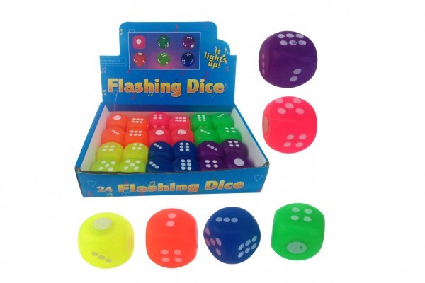 Kostka hrací svítící silikon 3x3cm 6 barev 24ks v boxu