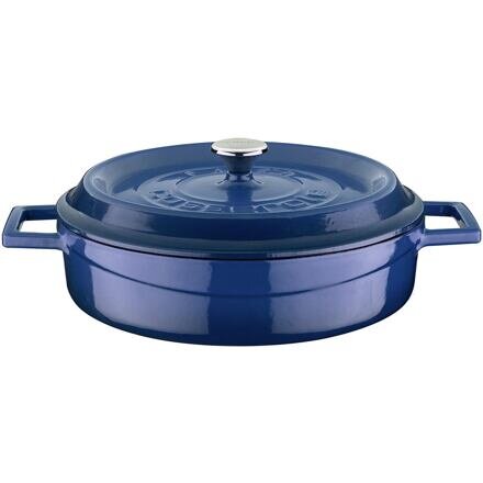 Tento modrý litinový kastrol o objemu 2,4 litru a průměru 24 cm je ideálním pomocníkem pro každou kuchyni. Díky třívrstvému smaltovanému povrchu a dvakrát pálené úpravě si zachovává svůj vzhled a odolnost i při častém používání. Je vhodný na všechny typy sporáků včetně indukce, a zároveň můžete s klidem péct i v troubě. Kastrol poskytuje rovnoměrné rozložení tepla, což zajišťuje dokonalé propečení a zachování chutí pokrmů - ať už vaříte, dušíte nebo smažíte.