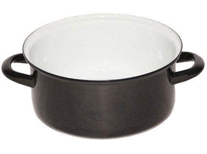 objem: 4,5 lprůměr: 24 cmvýška: 12 cmsíla plechu: 1-1,2 mmvnitřní barva: bílý granitvnější barva: černá s bílou pihouSmaltovaný rendlík BELIS STANDARD je nižší hrnec pro ohřívání vody, mléka nebo vaření vajec. číst celé