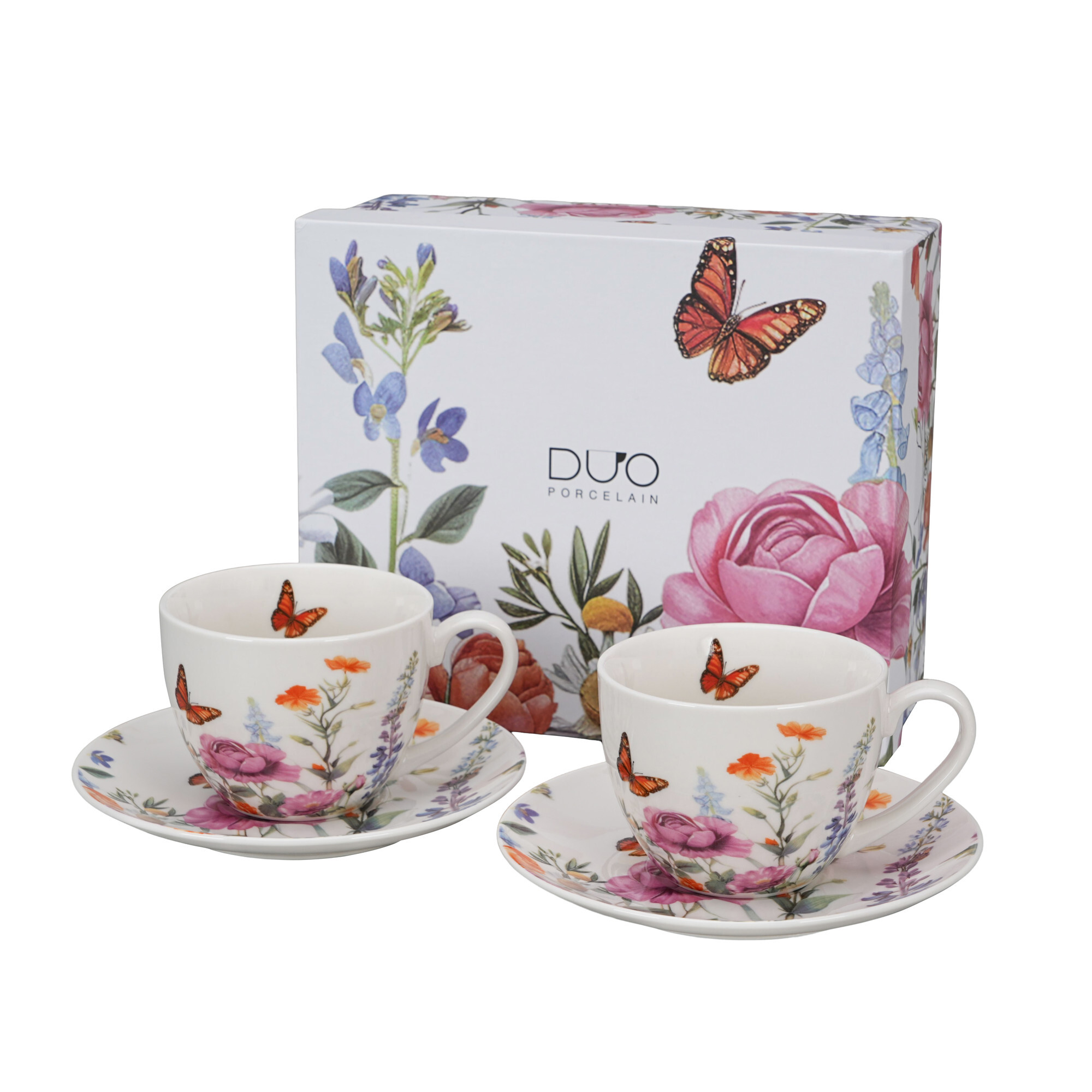 Komplet dwóch filiżanek ze spodkami SUMMER wchodzący w skład linii Kwiaty Classic wykonany z porcelany New Bone China, która charakteryzuje się naturalnym kremowo-białym kolorem z delikatnym połyskiem oraz wyjątkową wytrzymałością i trwałością. Linia zdobiona kolorowymi kwiatami takimi jak polna...