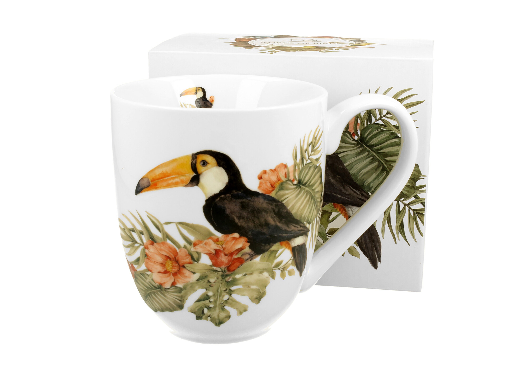 Kubek 1000 ml Ptasi Świat TUKAN wchodzący w skład linii ANIMALS wykonany z porcelany New Bone China, która charakteryzuje się naturalnym kremowo-białym kolorem z delikatnym połyskiem oraz wyjątkową wytrzymałością i trwałością.Kubek zdobiony motywem tukana umieszczonego w kompozycji egzotycznych...