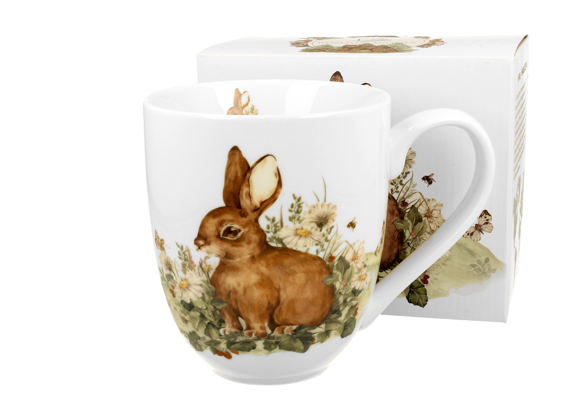 Kubek 1000 ml Świat Zwierząt ZAJĄC wchodzący w skład linii ANIMALS wykonany z porcelany New Bone China, która charakteryzuje się naturalnym kremowo-białym kolorem z delikatnym połyskiem oraz wyjątkową wytrzymałością i trwałością.Kubek zdobiony motywem małego zajączka otoczonego polnymi kwiatami....