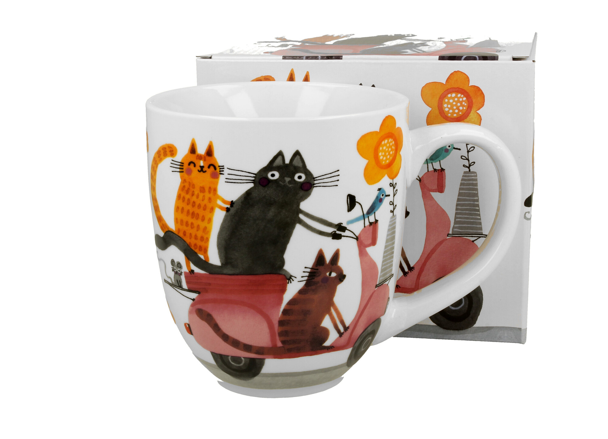 Kubek XXL Koci Świat KOTY NA SKUTERZE wchodzący w skład serii Animals, wykonany z porcelany New Bone China, która charakteryzuje się naturalnym kremowo-białym kolorem z delikatnym połyskiem oraz wyjątkową wytrzymałością i trwałością, zachowując lekkość i finezję.Dzięki swojej dużej pojemności...