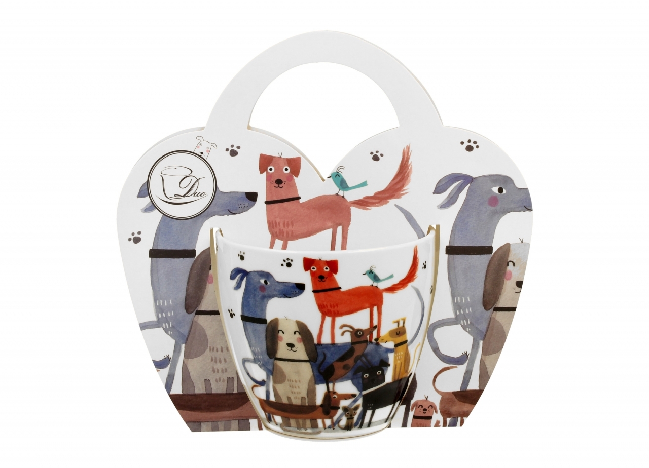 Porcelánový hrnek Pes na procházce 460 ml v dárkové taštičce