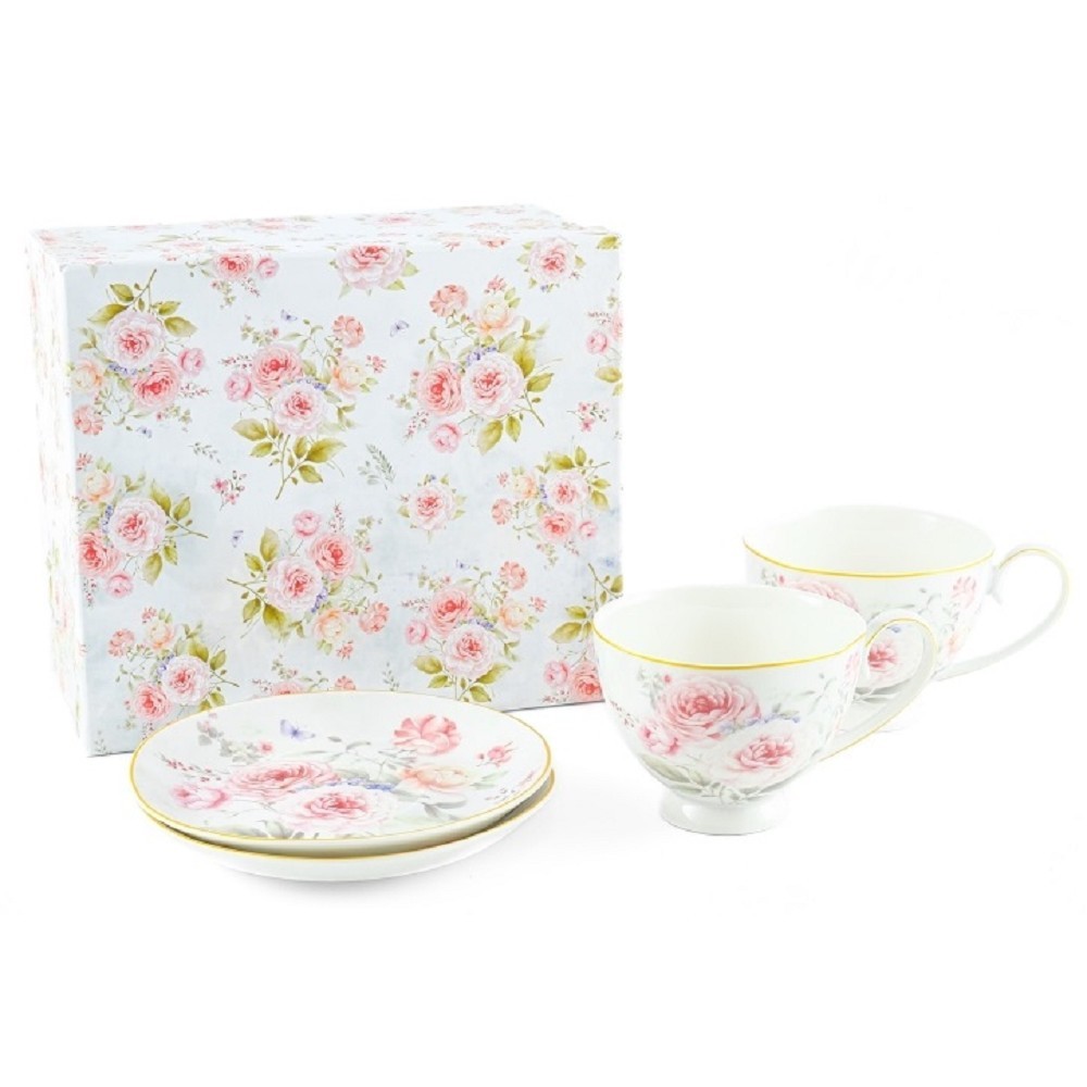 HOME ELEMENTS Šálek s podšálkem 2 x 250 ml, Růže