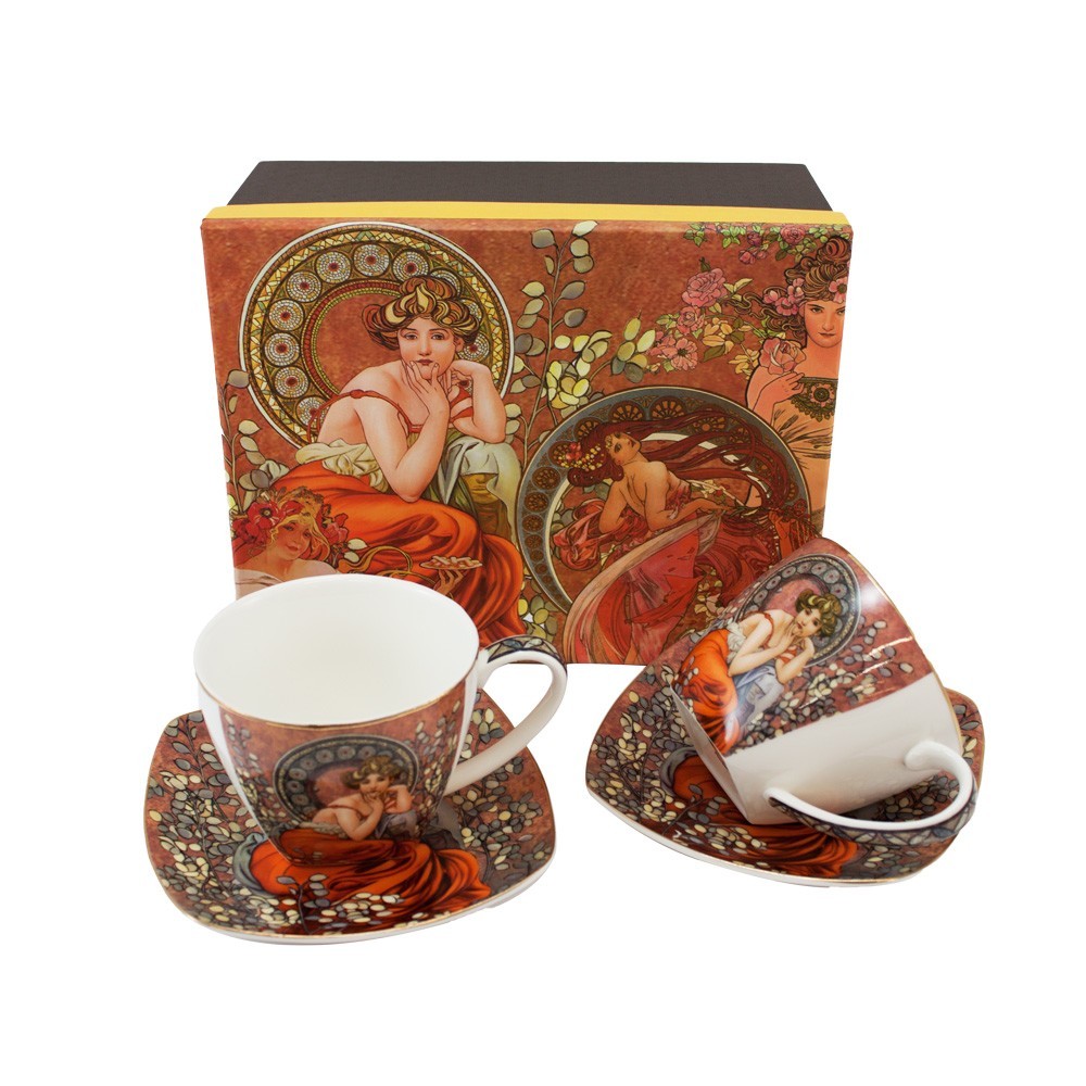 Objevte eleganci a praktičnost v sadě dvou šálků s podšálky a lžičkami, které vám zpříjemní každé posezení u kávy či čaje. Tento set HOME ELEMENTS, v tmavém designu inspirovaném stylem Mucha, je nejen funkční, ale také krásným doplňkem vaší domácnosti.