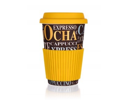 BANQUET Hrnek keramický se silikonovým víčkem GO, 400 ml, dekor Coffee