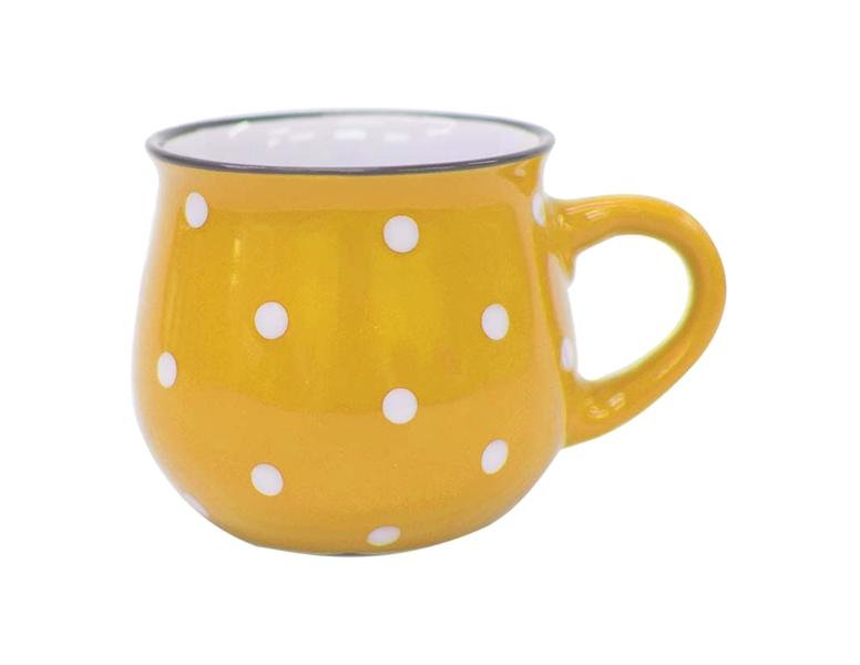 Tento keramický hrnek o objemu 230 ml nabízí perfektní velikost pro váš oblíbený horký nápoj. Díky kvalitní keramice si udržíte teplo nápoje déle a zároveň si užijete příjemný pocit z držení robustního hrnečku v ruce. Jeho elegantní, zároveň ale hravý design s bílými puntíky na žlutém podkladu zaručeně upoutá pozornost a stane se krásným doplňkem vaší kuchyně nebo kanceláře.
