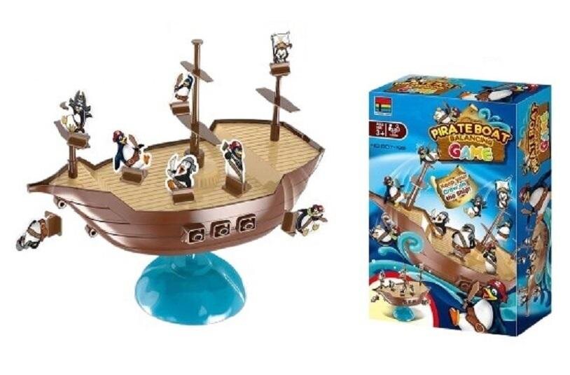Balansuj statkiem, tak aby nie zrzucić z niego żadnych elementów.Przygotowania: Ustaw statek na fali. Wstaw karty pingwinów na statku w odpowiednio wyznaczone dla nich miejsca. Resztę elementów, ułóż w jednej kupce, tak aby każdy gracz miał do nich dostęp.Rozgrywka: rę rozpoczyna najmłodszy...