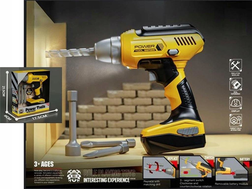 Wkrętarka 17.5x6x21.5 b/o Bardzo realistyczna wktętarka to doskonała, zabawka dla małego majsterkowicza. Wkrętarka działa jak prawdziwa, wystarczy nacisnąć przycisk, aby wiertło zaczęło się obracać. číst celé