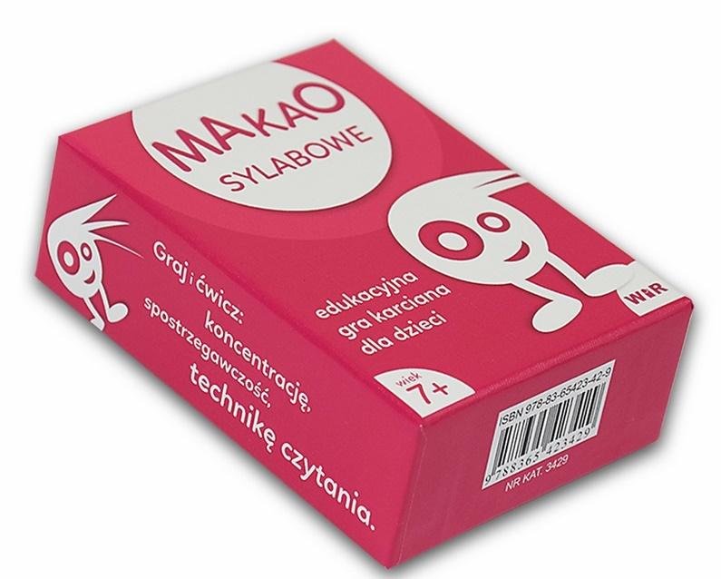 MAKAO SYLABOWE to edukacyjna gra karciana dla dzieci:- uczących się czytać,- doskonalących technikę czytania,- uczniów z dysleksją.Pudełko zawiera 52 karty. W zabawie może brać udział od 2 do 5 graczy. Gra przeznaczona jest dla dzieci od 7. roku życia. Rozgrywka jest oparta na prostych zasadach...
