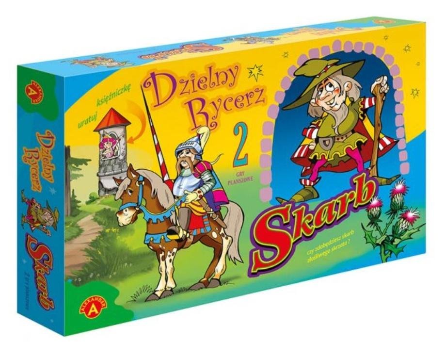 Dzielny rycerz i Skarb to dwie gry planszowe dla młodszych dzieci. W pierwszej grze jej uczestnicy wcielają się w postać dzielnego rycerza, który spieszy na ratunek zamkniętej w wieży księżniczce. Po drodzespotyka go wiele niebezpiecznych niespodzianek. Zwycięzcą w grze zostaje ten, kto mino...