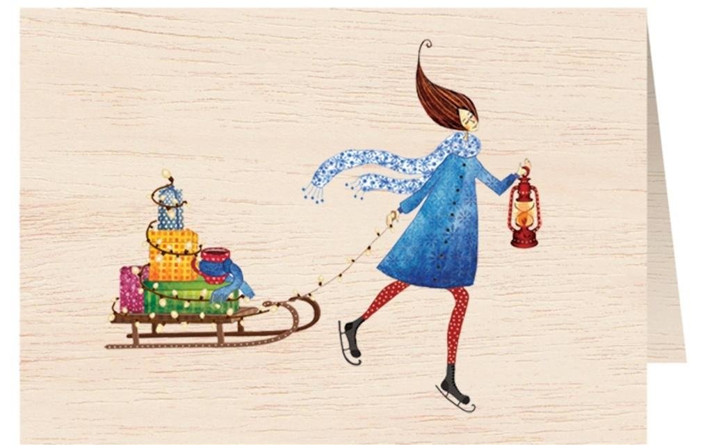 Karnet drewniany C6 + koperta Święta Kobieta Sanki