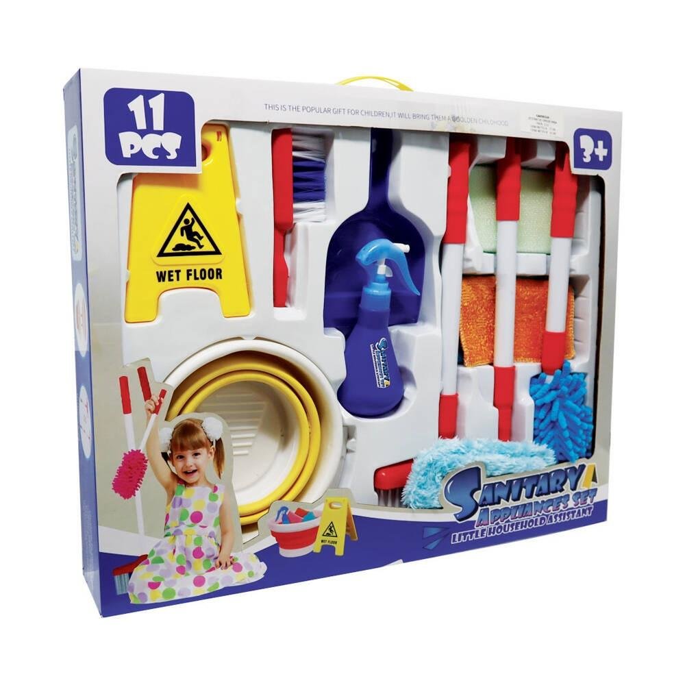 Zestaw do sprzątania, który zawiera: ścierkę, butelkę na płyn, mopa, szczotkę do kurzu, zmiotka, 2 szczotki do zamiatania, wiadro, znak ostrzegawczy. Produkt nie potrzebuje baterii. Zabawka przeznaczona dla dzieci powyżej 3 roku życia. číst celé