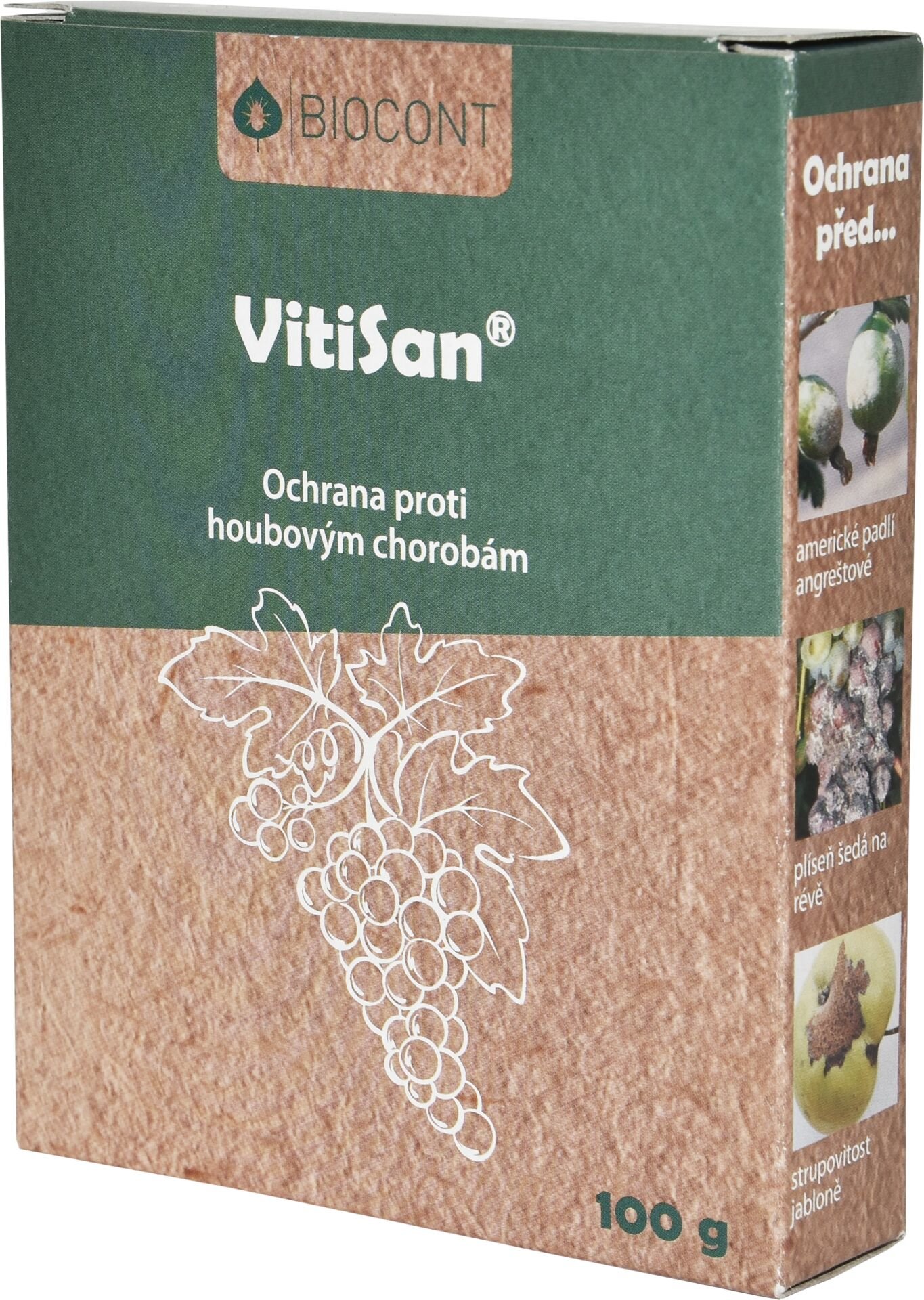 VitiSan je přípravek určený k ošetření révy vinné, jádrového ovoce i zeleniny. Pomáhá předcházet a potlačovat padlí, plíseň šedou, strupovitost, moniliovou spálu a další plísňová onemocnění. Jeho účinek spočívá v ovlivnění pH na povrchu listů, což zabraňuje klíčení spór a omezuje růst mycelia patogenů. Navíc obsahuje draslík, který působí jako přirozená živina pro rostliny.