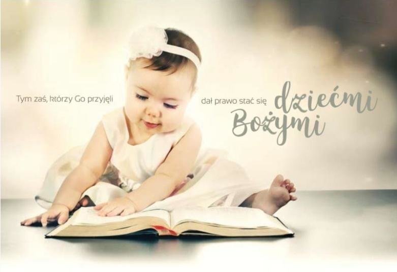 Kartka składana z kopertą.Kartka zawiera tekst:Tym zas którzy Go przyjęli, dał prawo stać się dziećmi Bożymi.Kartka, w której możesz wpisać dowolny tekst lub życzenia na dowolną okazję. číst celé