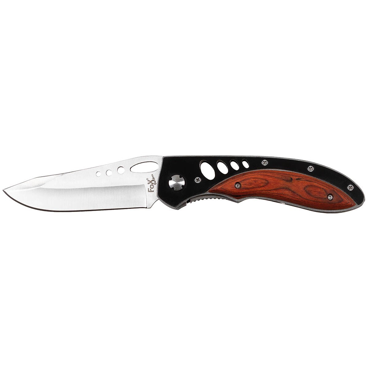Zavírací nůž z ušlechtilé oceli s děrovanou čepelí.Od značky Fox Outdoor.Vlastnosti:• čepel s hladkým broušením a perforací pro jednodušší otevírání• pojistka Liner lock• perforovaná kovová rukojeť s vložkami z ušlechtilého dřeva• ergonomicky tvarovaná rukojeť číst celé