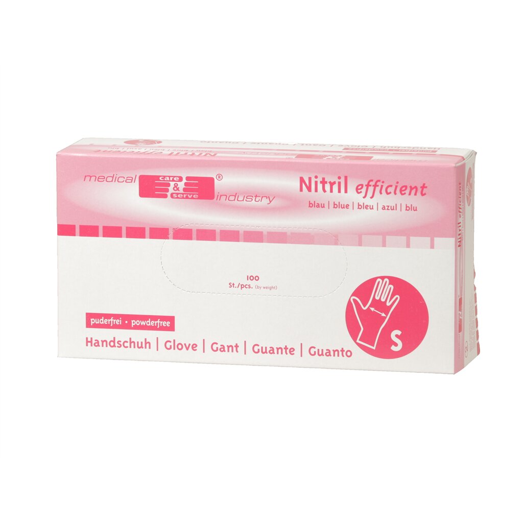 Nitrilové rukavice efficient, nepudrované, modré, balení 100 ks/box, vel. S