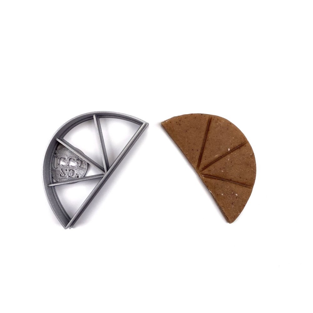 Vykrajovátko z plastu z 3D tiskárny je tvořeno z materiálu PLA , který je biologicky odbouratelný, odolný do 50°C, nevhodný do myčky na nádobí. Střední linie vykrajovátka výrazně otlačí obrazec do hmoty a následně usnadní zdobení. Dá se využít pro tvarování těst na cukroví, sušenky a perníčky,...