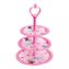 - Růžový třípatrový skládací stojan na dorty