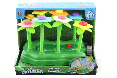 Vodní rozstřikovací květina na baterie (3xAG13 - jsou součástí balení). Napojení přímo na zahradní hadici. Uprostřed květina barevně svítí. Baleno v otevřené krabici. Materiál plast. Rozměry balení cca 26x20x16 cm. Věk 3+ číst celé