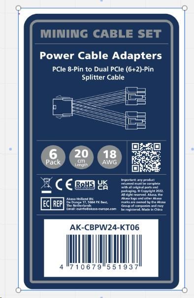 AKASA kabel PCIe 8-Pin na Dual PCIe (6+2)-Pin Splitter cable, 6 Sets