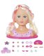 Česací hlava má v blonďatých vláscích několik barevných pramínků. Malé kadeřnice tak mohou vymýšlet nápadité účesy třeba zapletením barevného pramínku do blonďatých vlásků a vytvořit tak vícebarevný copánek. Čtyři gumičky a dvě sponky vždy udrží nádherné...