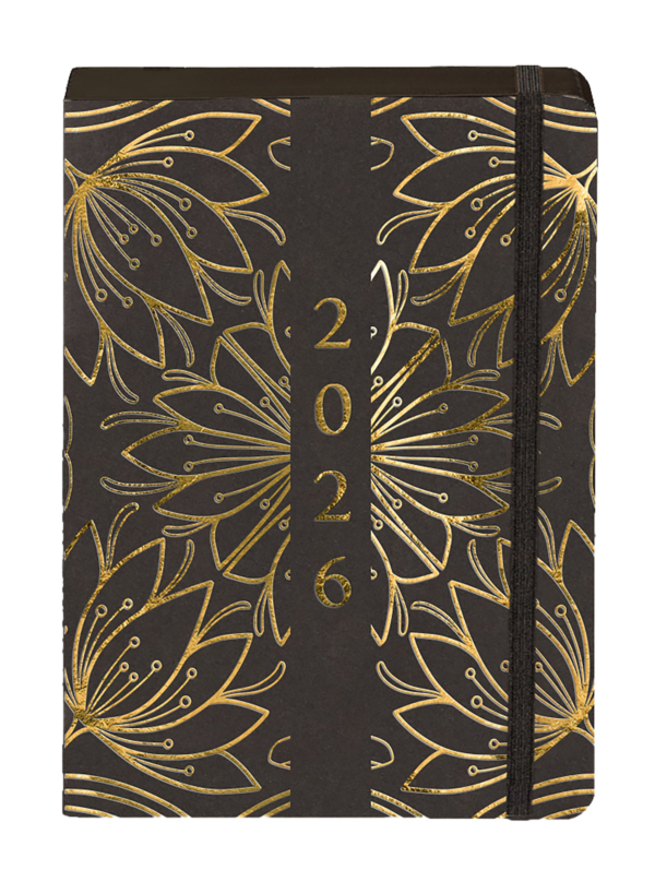 Kalendarz książkowy A5 2026 Kraft dzienny Kwiaty ciemne (polsky)