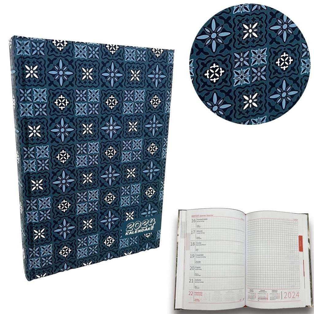 "kalendarz formatu A5, układ tygodniowy, okładka aksamitna soft touchkażdy tydzień roku znajduje się na jednej stronie kalendarza, a na sąsiedniej jest miejsce na notatkiterminarze miesięczne na początku i na końcu kalendarzabrak podziału godzinowegojęzyk polski, angielski, niemieckiimieniny oraz...