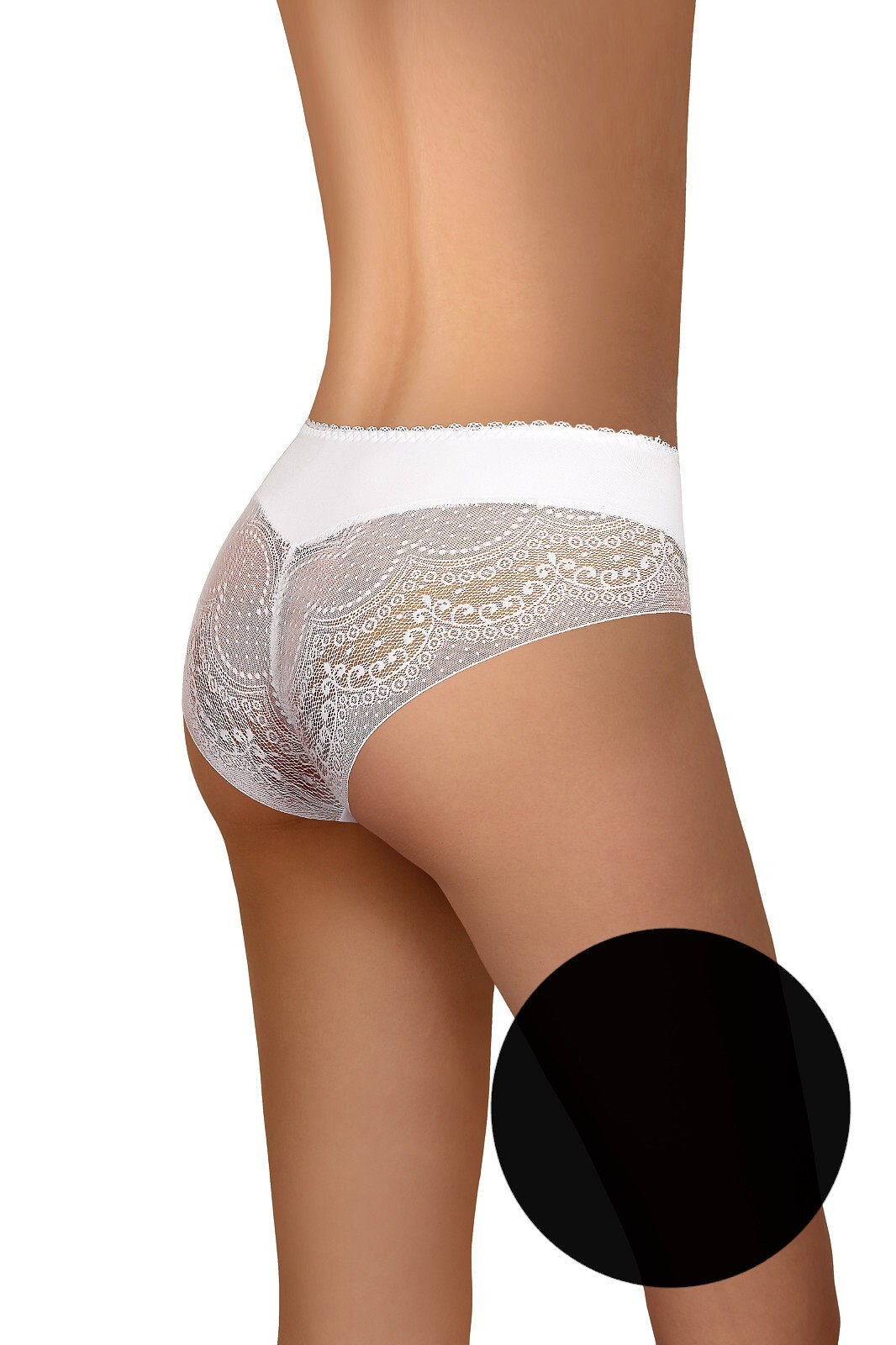Figi damskie- z gładkiej mikrofibry w połączeniu z efektowną ażurową koronką- przód zdobią satynowe kokardki číst celé