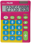 Kalkulator 10-pozycyjny z dużymi klawiszami i wyświetlaczem. Idealne dla osób starszych i słabowidzących. Na obudowie dominuje kolor różowy z elementami niebieskiego i zielonego co podkreśla unikalny disign kalkulatora. Klawisz cofania. Podwójne zasilanie: bateria 1,5V oraz bateria słoneczna....