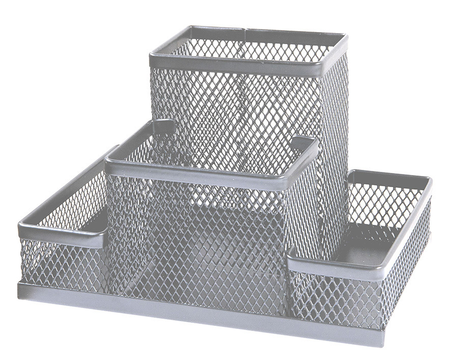 Jednoduchý, ale pevný kovový drátěný design zajišťuje dlouhou životnost a stabilitu. Rozdělení do čtyř přihrádek umožňuje snadné uspořádání různých druhů kancelářských potřeb, jako jsou tužky, propisky, nůžky nebo korektory.