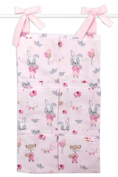Baby Nellys Kapsář na postýlku 6 kapes, Liška a Zajíc, růžový