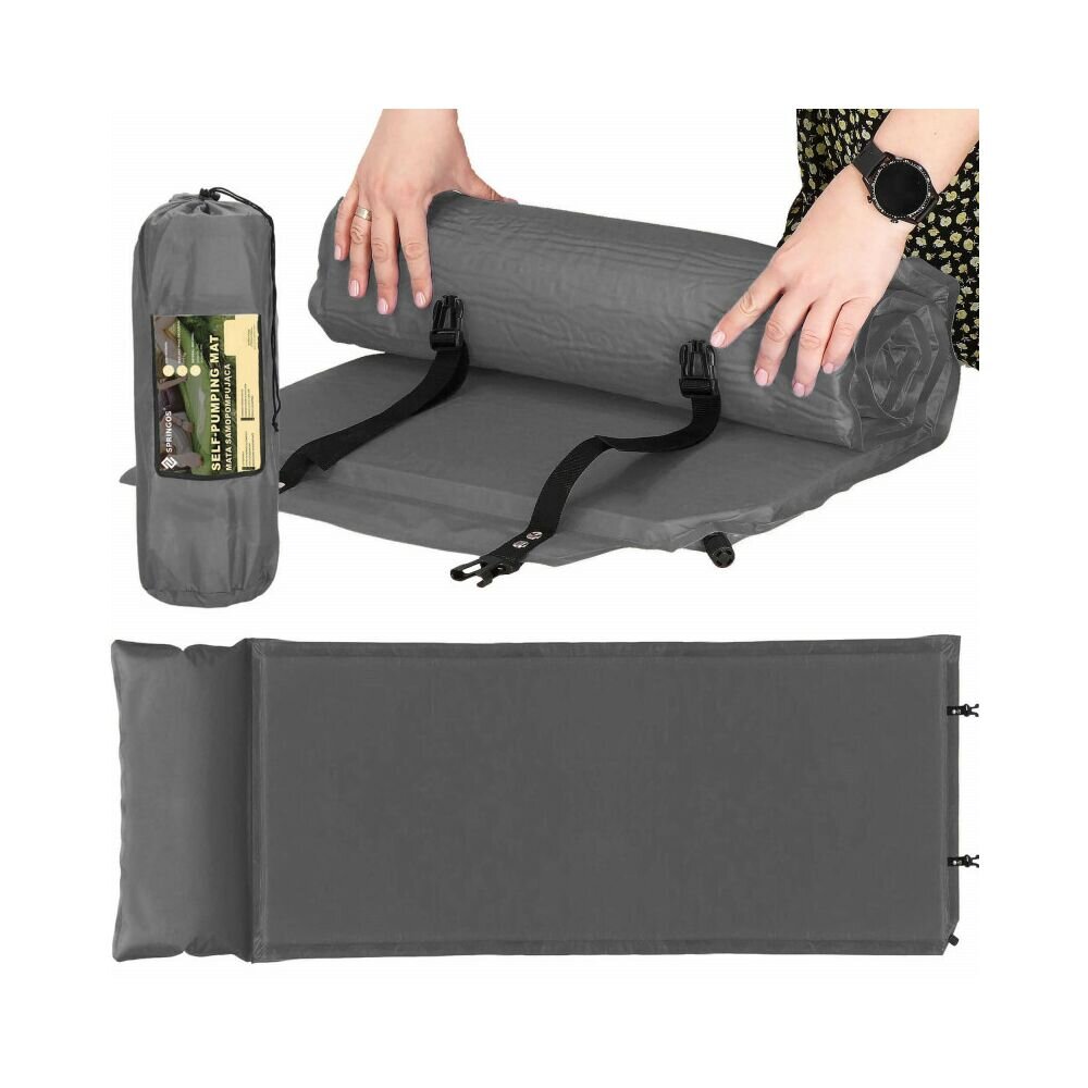 Samonafukovací karimatka s polštářem 186x53x2,5 cm, šedá SPRINGOS ROVER