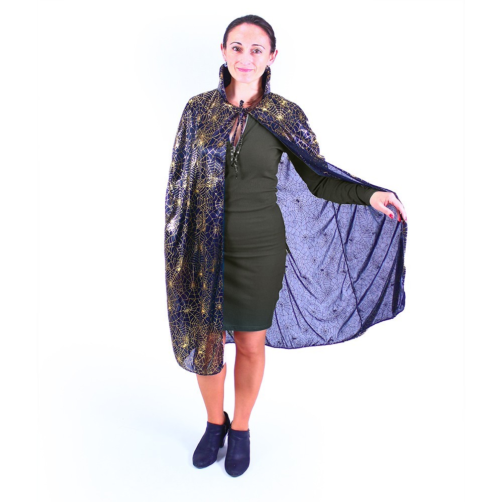 Úžasný černý plášť pro všechny čaroděje a čarodějnice! Plášť na zavazování je určen pro dospělé. Tento stylový kousek je dekorován potiskem zlatých pavučin. Plášť je dlouhý cca 104 cm. číst celé